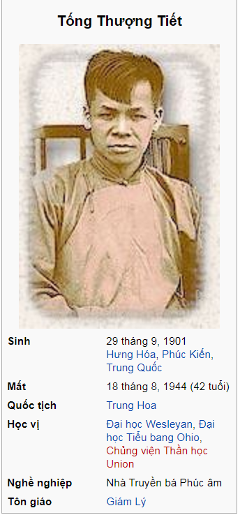 Ông Tống Thượng Tiết được một người viết về ông mệnh danh là “một con người lạ lùng”, tưởng cũng cần tìm hiểu. Ông Tống Thượng Tiết sanh ngày 27-9-1901, tại làng Honchek, huyện Hinh hoa, tỉnh Phúc Kiến (Nam Trung Hoa).