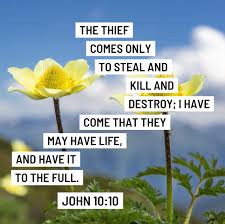 Trong Giăng 10:10 , Chúa Giê-su phán: “Kẻ trộm chỉ đến để ăn cắp, giết hại và phá hủy; còn Ta đến để họ được sống và sống sung mãn.”